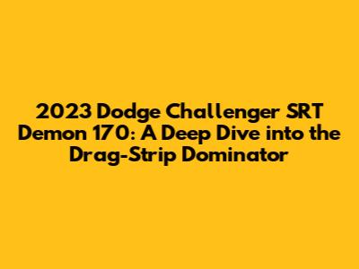 Alright, gearheads, let's talk about something truly insane: the 2023 Dodge Challenger SRT Demon 170. This isn't just a car; it's a statement. It's Dodge screaming, "We're not playing around!" This beast is engineered to dominate the drag strip and leave a lasting impression on anyone lucky enough to witness its raw power. Forget about your everyday sports cars; the Demon 170 is in a league of its own, a meticulously crafted machine designed for one purpose: to obliterate the competition. It's the culmination of Dodge's commitment to pushing the boundaries of automotive performance, and it's a fitting send-off for the iconic Challenger. Get ready, because we're about to dive deep into what makes this car so special, from its earth-shattering engine to its track-focused features and the overall experience of piloting this drag-racing monster. We will unpack all of the details. Buckle up, because it is going to be a wild ride!