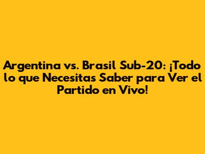 ¿Dónde y Cómo Ver el Partido Argentina vs. Brasil Sub-20 en Vivo?