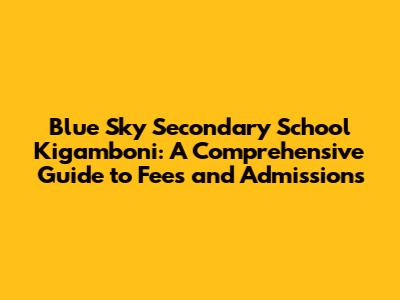 Blue Sky Secondary School Kigamboni: Fees & Admissions Guide