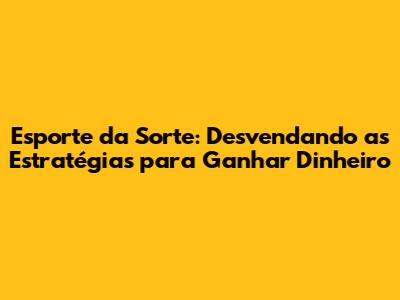 Esporte Da Sorte: Seu Guia Completo Para Ganhar Dinheiro