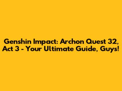 What's up, Genshin adventurers! Your favorite guide-slinging pal is back, and today we're diving deep into Archon Quest 32, Act 3. This part of the story is seriously crucial, guys, and if you're feeling a little lost or just want to make sure you're on the right track, you've come to the perfect place. We're going to break down everything you need to know, from the biggest plot twists to the nitty-gritty of each step. So, grab your favorite snack, settle in, and let's get this Genshin adventure rolling!