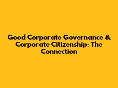 Good Corporate Governance & Corporate Citizenship: The Connection