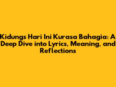Hey guys! Ever felt that pure, unadulterated joy that just bubbles up from within? That feeling of being utterly, completely happy? Well, if you've experienced it, you're probably familiar with the Indonesian song "Hari Ini Kurasa Bahagia" (Today I Feel Happy) by Kidung. This song isn't just a tune; it's a mood, a memory, and for many, a deeply personal anthem. Today, we're going to dive headfirst into the lyrics, the meaning, and the overall impact of this beautiful song. Let's get started, shall we?