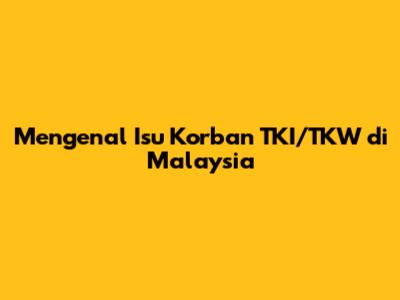 Mengenal Isu Korban TKI/TKW Di Malaysia