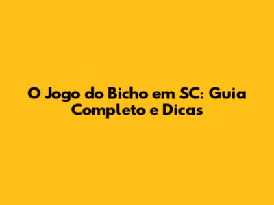 O Jogo Do Bicho Em SC: Guia Completo E Dicas