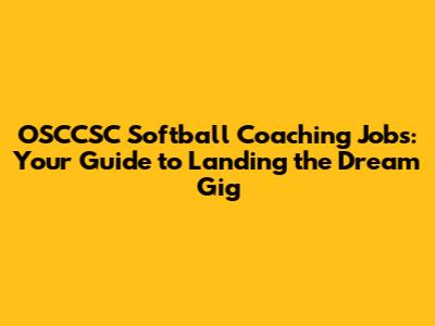 OSCCSC Softball Coaching Jobs: Your Guide To Landing The Dream Gig