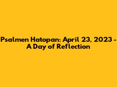 Psalmen Hatopan: April 23, 2023 - A Day Of Reflection