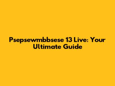 Psepsewmbbsese 13 Live: Your Ultimate Guide