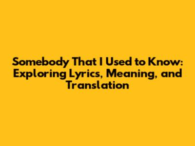 Somebody That I Used To Know: Lyrics, Meaning, And Translation