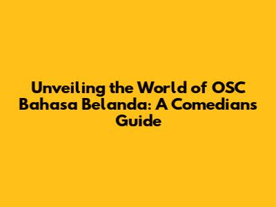 Unveiling The World Of OSC Bahasa Belanda: A Comedian's Guide